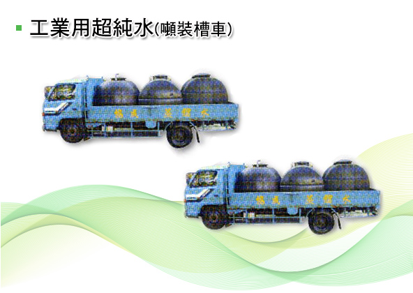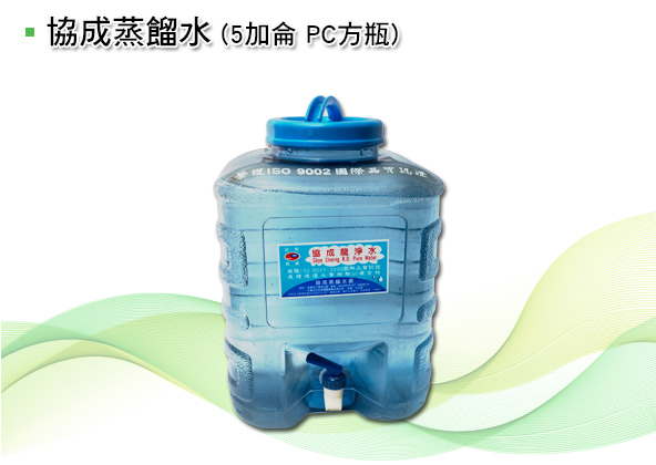 蒸餾水、包裝飲用水、美容用水、工業超純水(備有槽車運送)。 全自動製造包裝零售、批發。